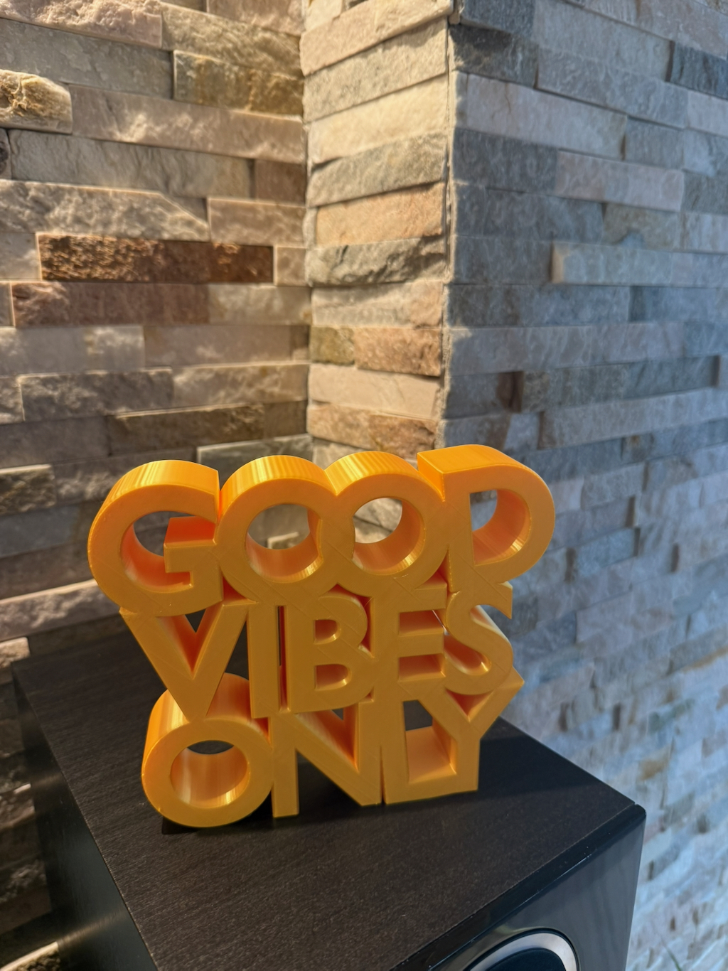 Decorațiune Good Vibes Only – printată 3D din PLA, în România. Cu un design modern și dimensiuni de 18×15×3,5cm, este alegerea perfectă pentru birouri, spații creative sau cadouri cu mesaj pozitiv.